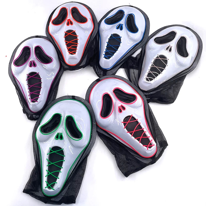 2025 Halloween Horror Mask Luminous LED Light Party Mask Adult Full Face Headgear Night Mask Glowing In Happy Halloween